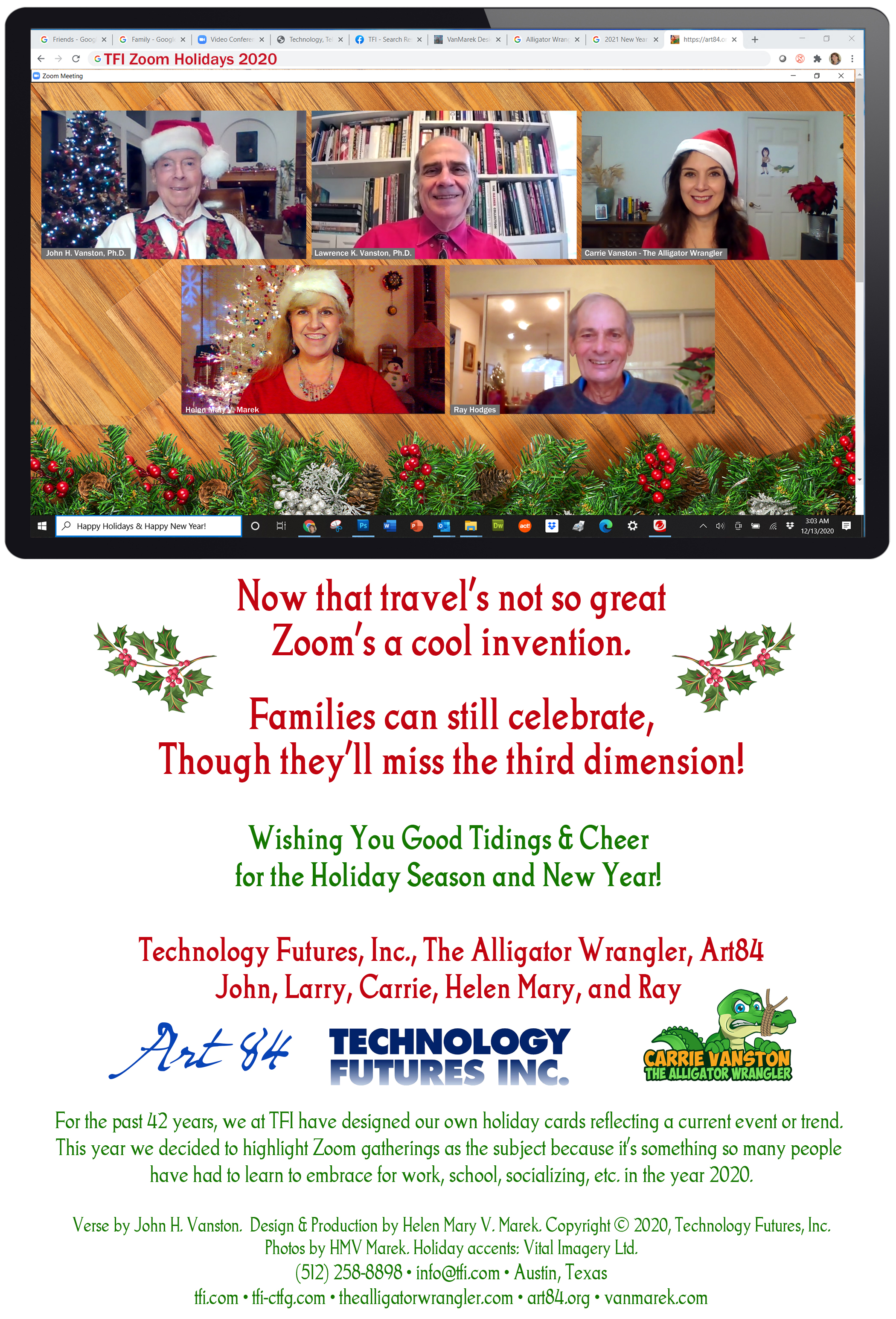 joined the fun! TFI Founder, John Vanston, writes the verse and Creative Director, Helen Mary V Marek designs the card. This year's subject is Zoom gatherings!
